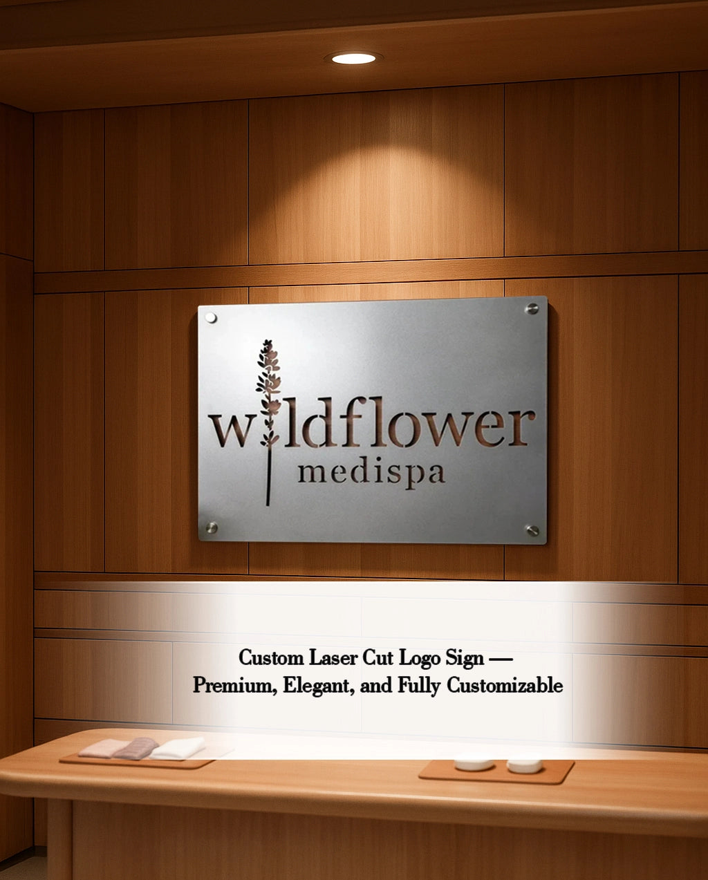 Perfect for professionals, retail stores, corporate lobbies, studios, and more. Your logo becomes a timeless visual statement, proudly made in the USA by artisans with over 30 years of experience.