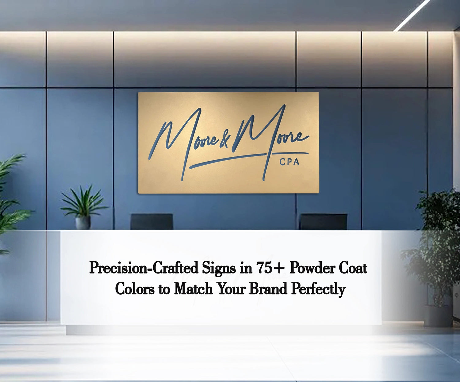 We offer over 75 vibrant powder coat color finishes to align your signage perfectly with your logo or interior decor. Every sign is laser-cut using high-end fiber laser technology, hand-sanded for a clean edge, and sealed with a durable clear coat to ensure a sleek finish that lasts.