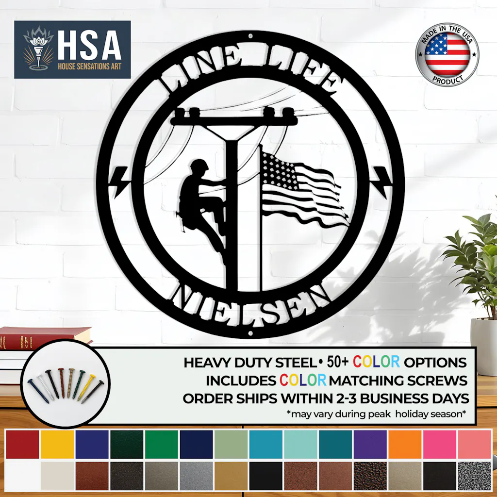 Custom Lineman Metal Sign – Unique Gift for Utility Workers