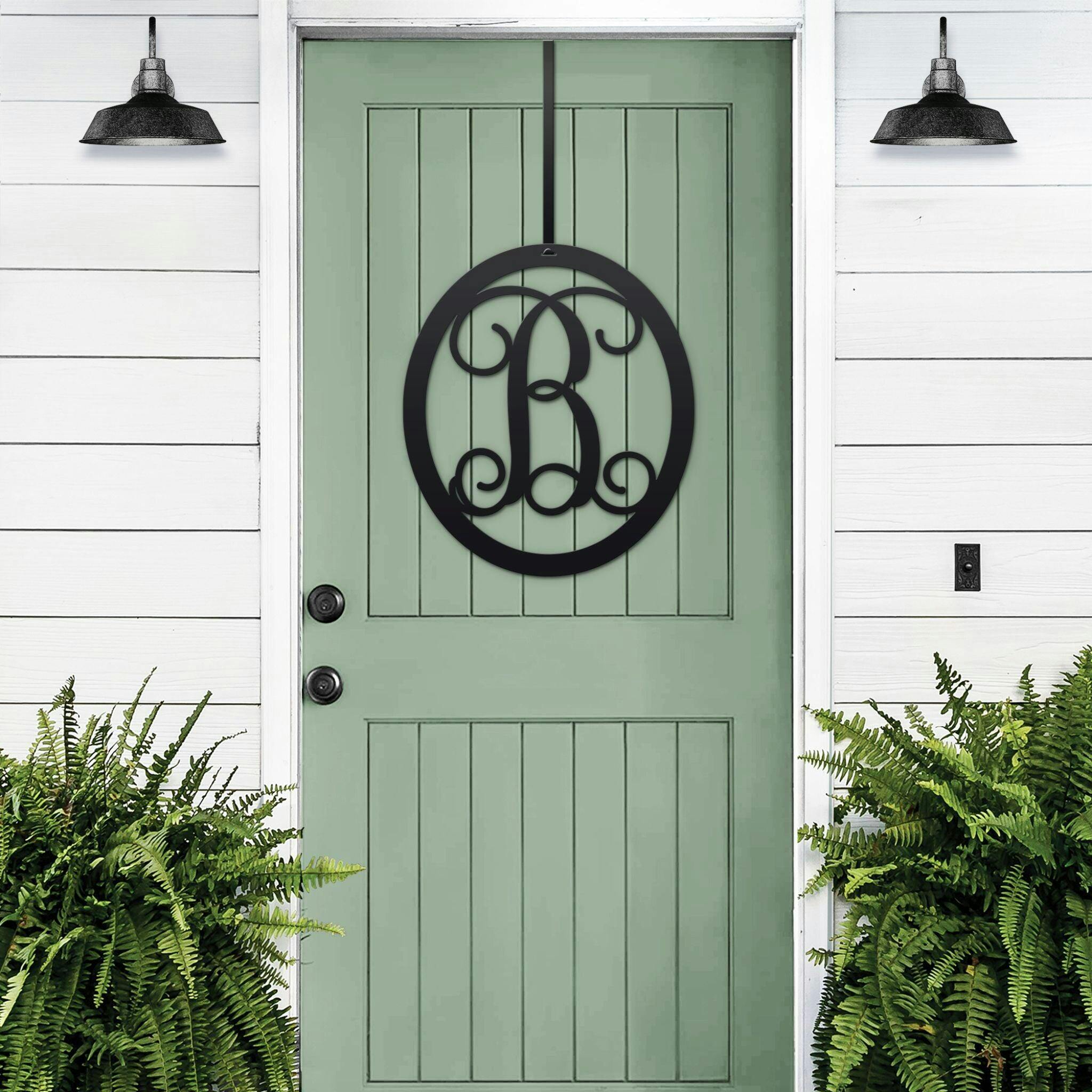 Custom Monogram Door Sign – Oval Metal Wreath for Home Entry