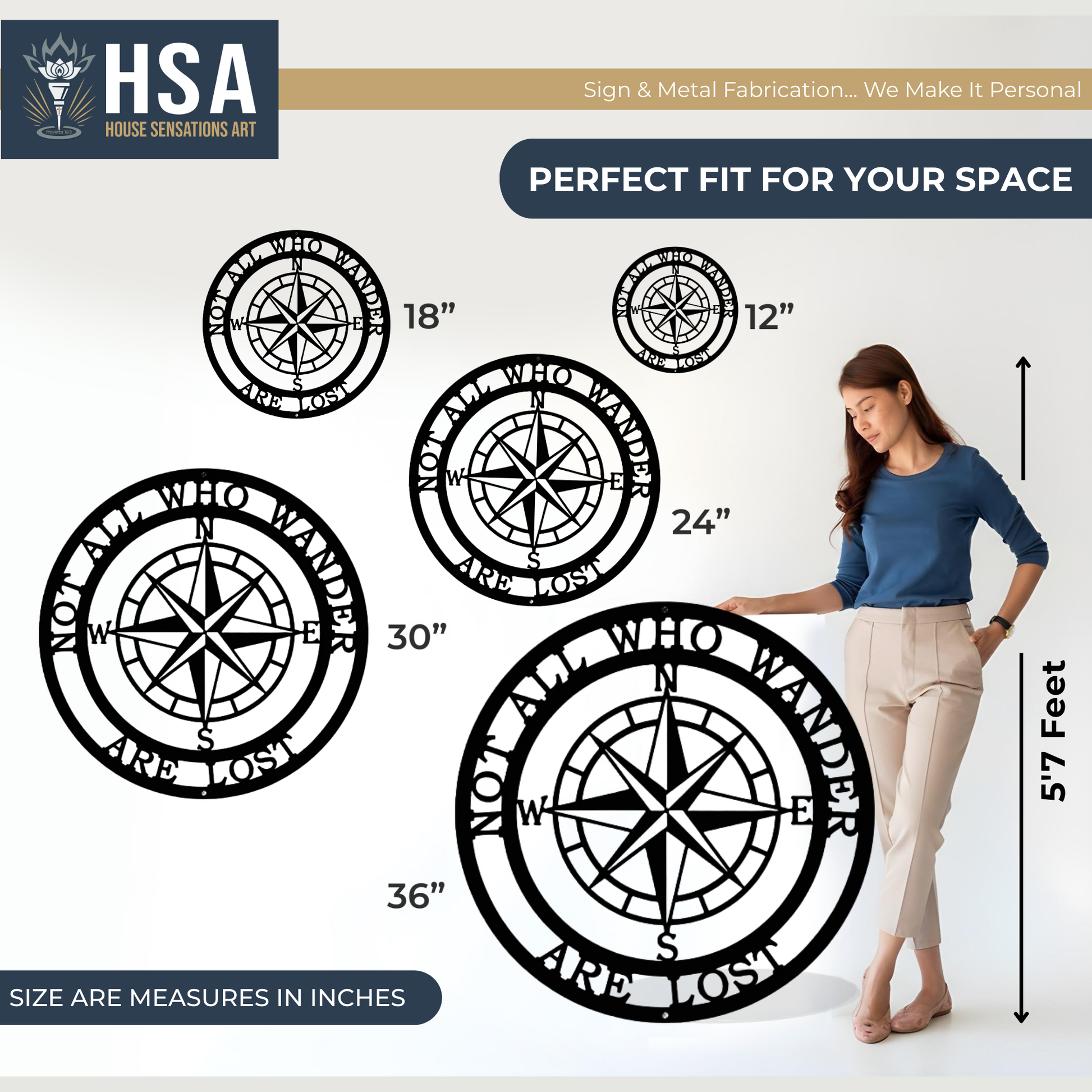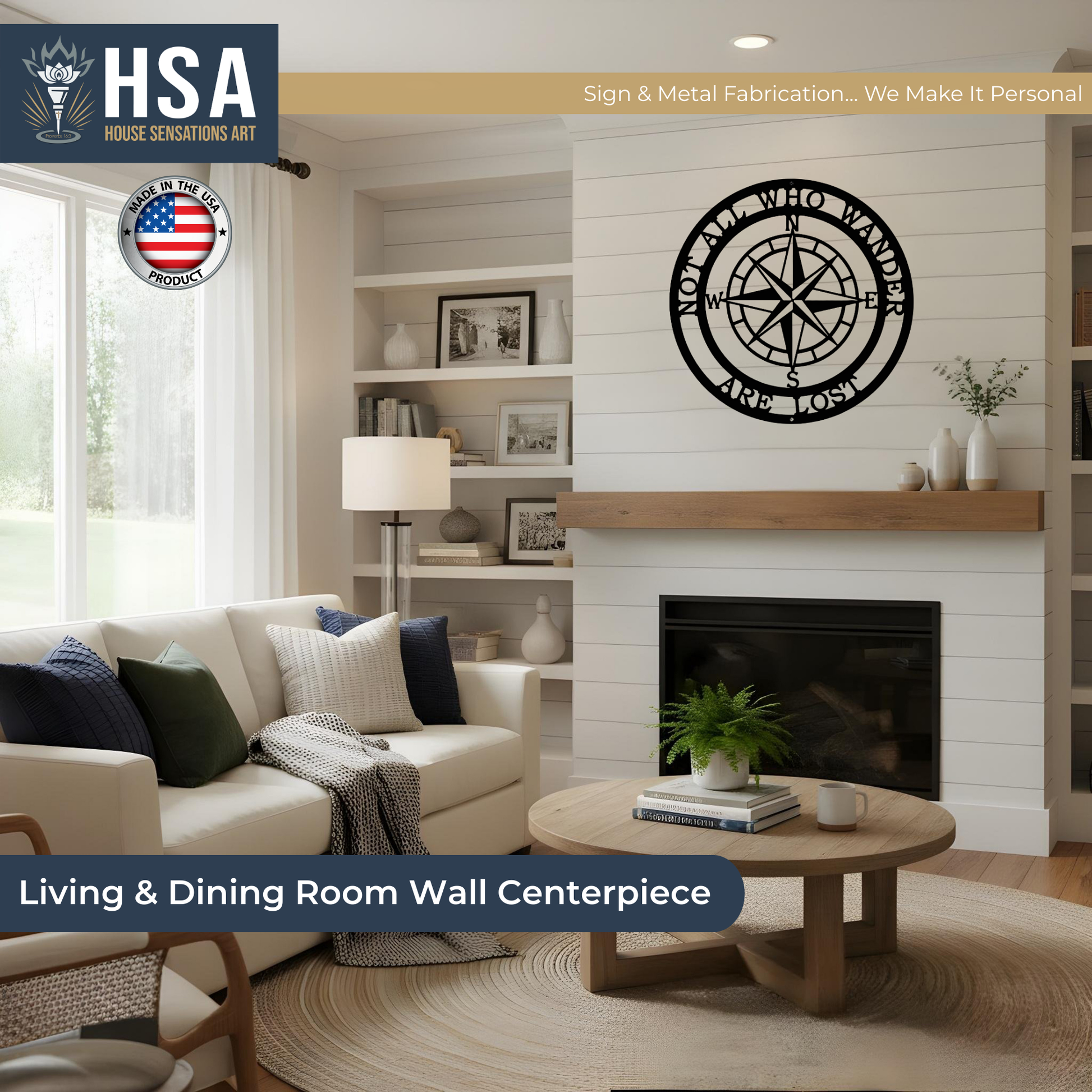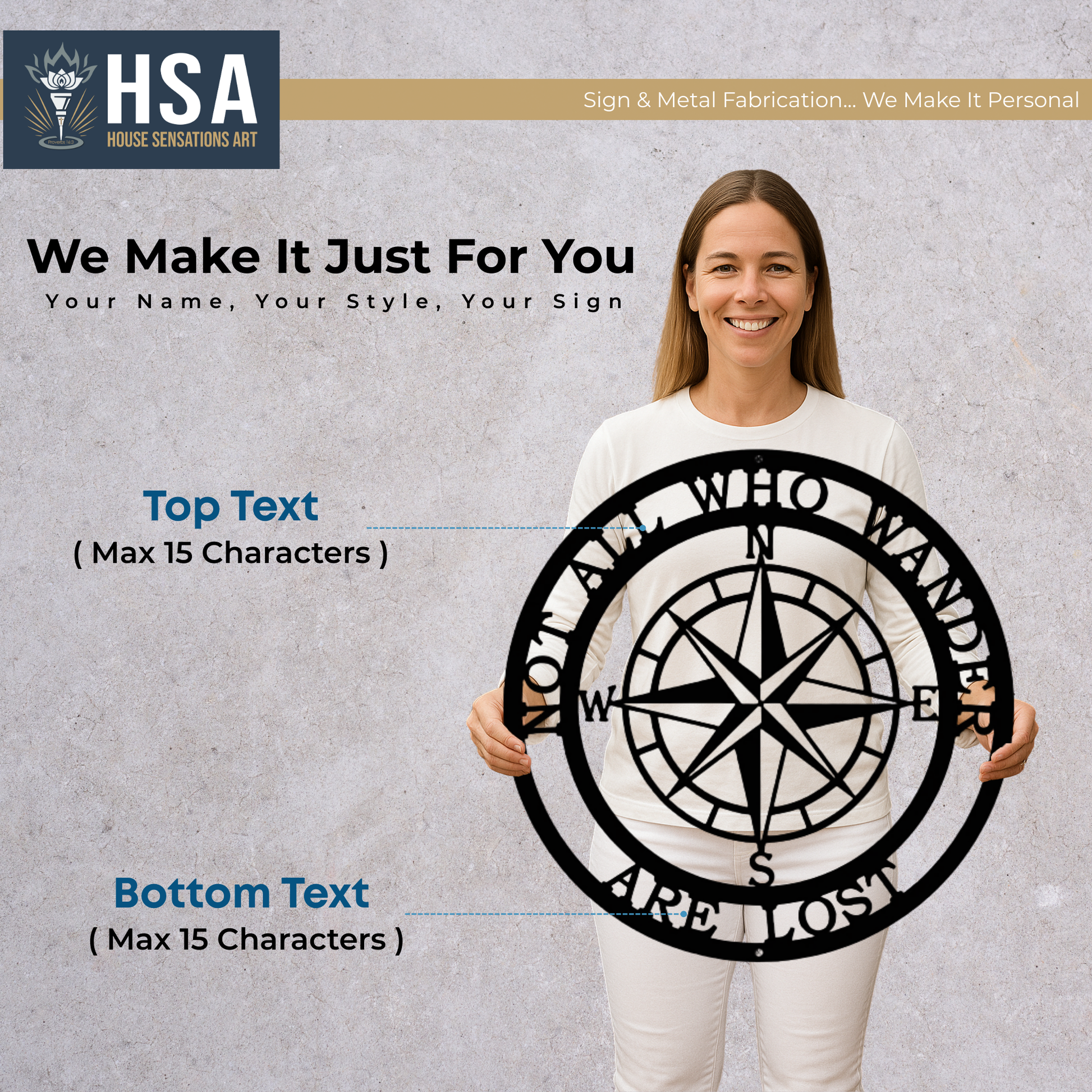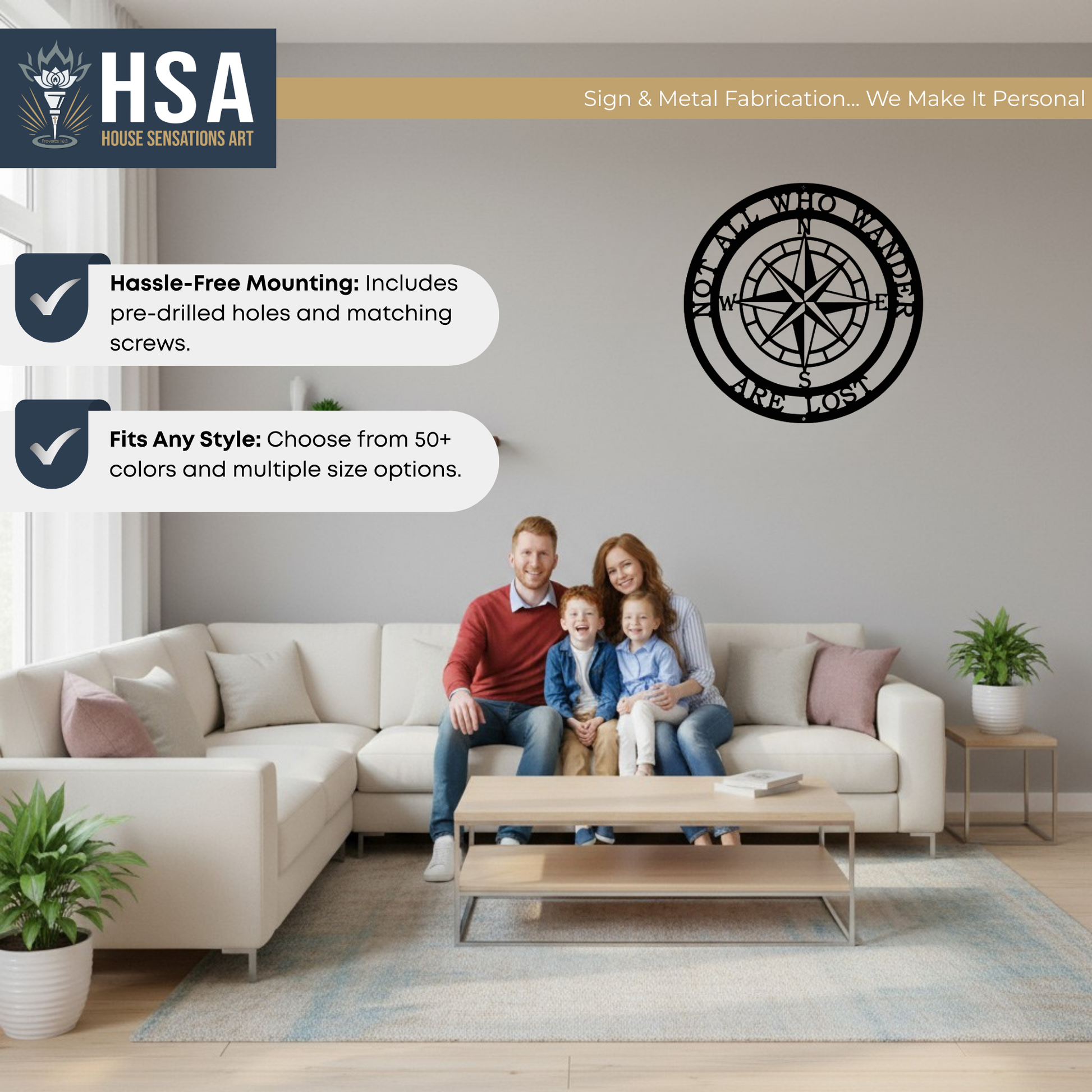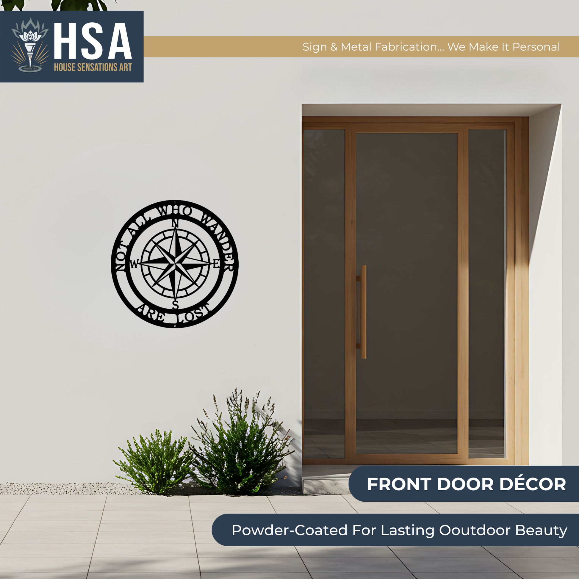 Nautical Compass Metal Sign: Lake House Decor, "Not All Who Wander"
